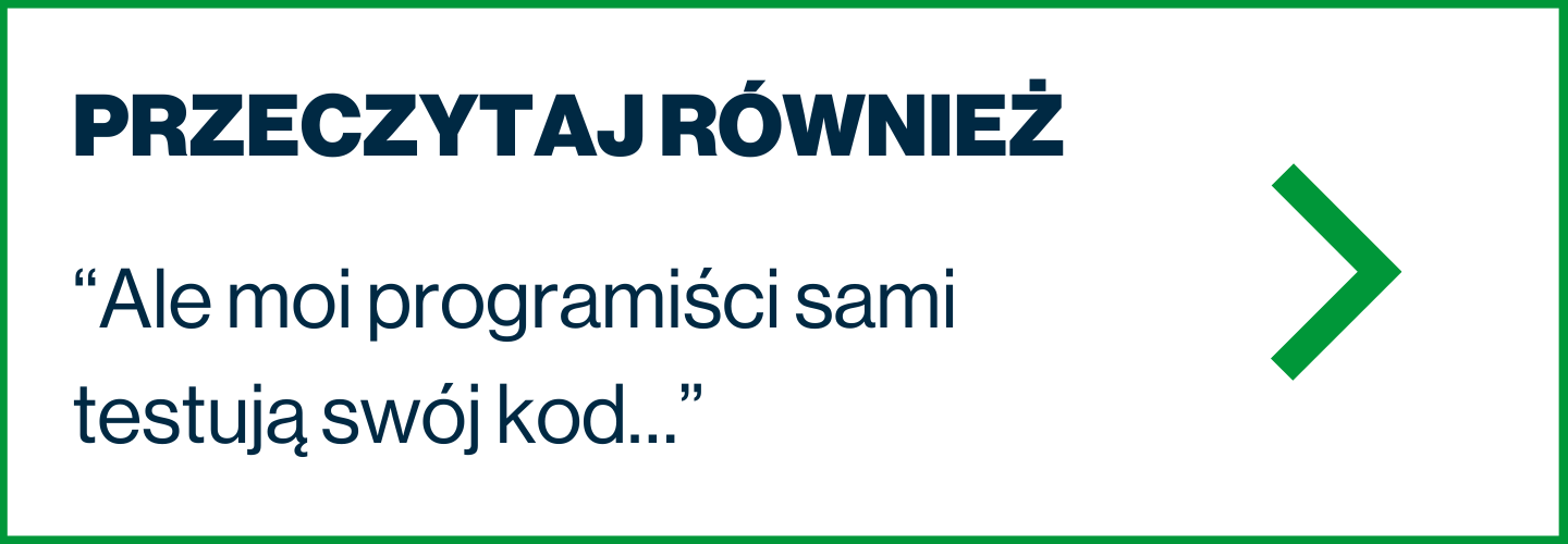 Warto wspomnieć również jeszcze o jednej rzeczy, którą trudno zakwalifikować bezpośrednio do któregoś z powyższych obszarów, a która niewątpliwie jest bardzo ważna, jeśli nie najważniejsza. Deweloperzy (przeważnie, ale nie zawsze!) po prostu nie lubią testować, a przypisywanie im tego zadania kończy się pobieżnym jego wykonaniem, a bywa, że i frustracją, która skutkuje zmianą pracy. Mając na uwadze dobro zespołu deweloperskiego oraz wyżej wymienione punkty, warto oddać testowanie oprogramowania specjalistom, którzy w należyty sposób zadbają o jakość wytworzonej aplikacji.