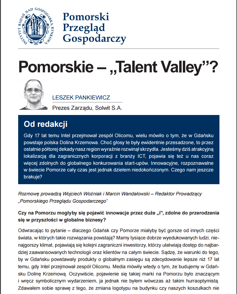 Prezes Leszek Pankiewicz w wywiadzie dla Pomorskiego Przeglądu Gospodarczego