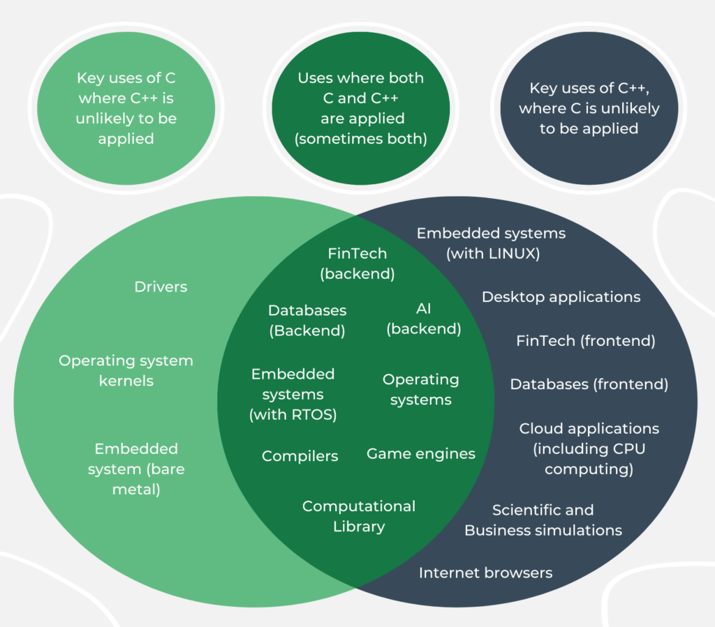 It is unfortunately common for candidates we encounter during interviews to combine these two languages under one heading – C/C++. Since I verify technology knowledge during meetings, this signals that the candidate may not fully grasp the differences between these languages – I tend to suspect that it is only about C++. Hence I check it every time. It wouldn’t make sense for a C programmer to group that language with its successor3. As a matter of fact, they differ both in the way they work as well as in the projects in which we use them.