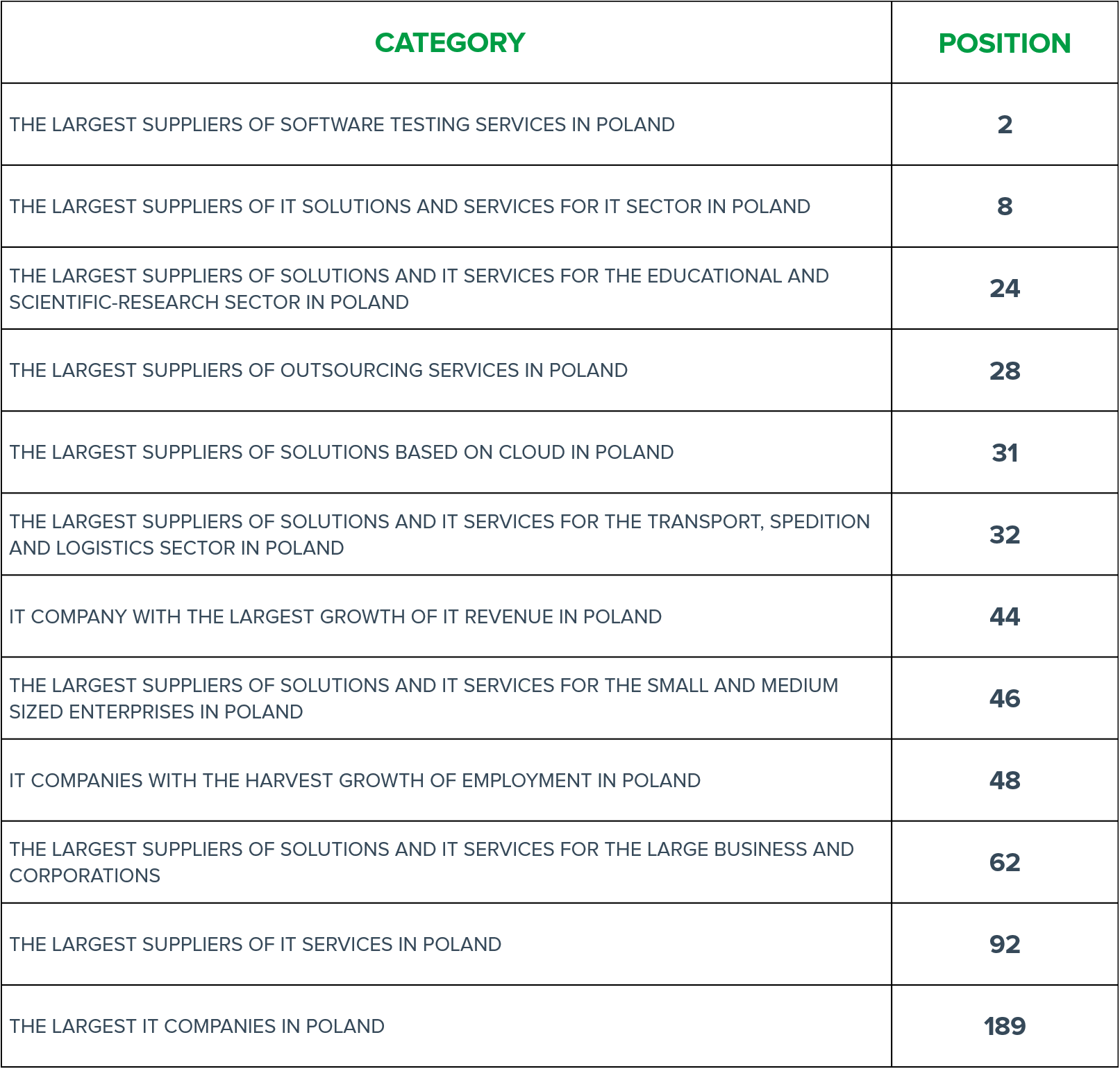 Solwit participates in the report study from 2015. The changing Solwit locations in the detailed tables show how dynamically is our company developing and changing.