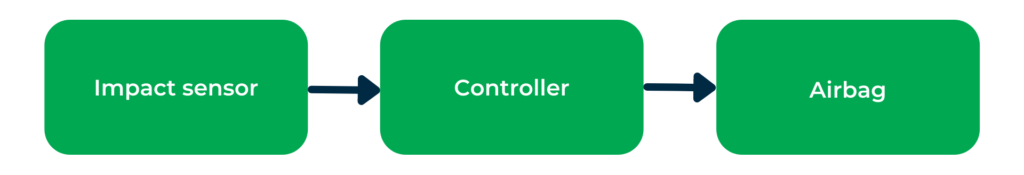 The signal from the impact sensor is routed to the controller, which then decides whether the cushion is fired. The system should be effective for relatively small impact forces as well as for larger ones. Plus, it needs to work within a sufficiently short period of time. Needless to say, all these parameters must be thoroughly tested.