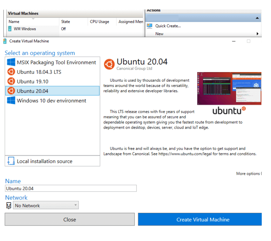 If you want to create a virtual machine with a Linux operating system (such as Ubuntu), you do the same VM creation and in the same way as for a virtual machine with a Windows operating system.
