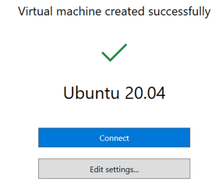 When the creation is complete, a summary window will appear. From there, you can go to the connection to the virtual machine or edit its parameters.
