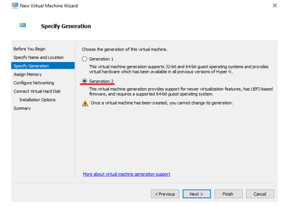Confirm your selections by clicking Next. In the next dialog window, select the Generation 2 option and confirm your selection by clicking Next.