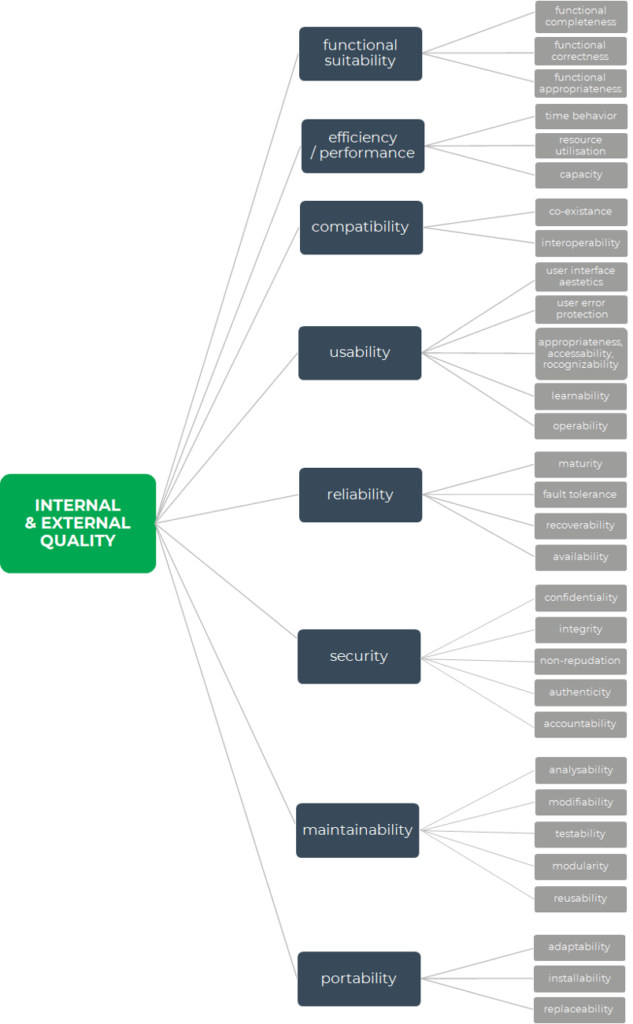 As we can see, software quality has been described as a set of characteristics and sub-characteristics required for a piece of software to be considered of high quality.